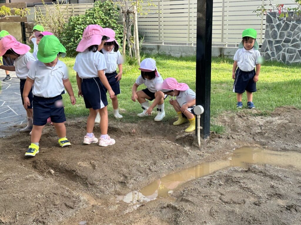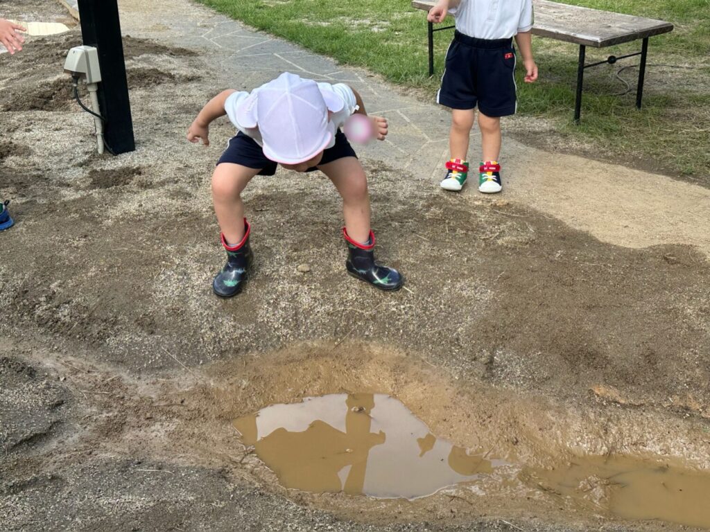 「今日は暑いので、ちょっと遊んだらお部屋に帰らなくてはいけません…泥遊びはお休みにして見るだけにしてね🥲」