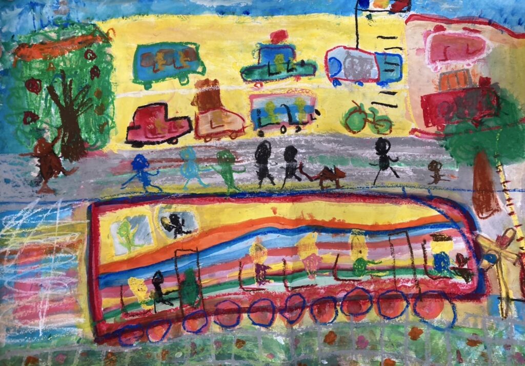「かくれんぼしているから、私は木の後ろに隠れてるんだよ」