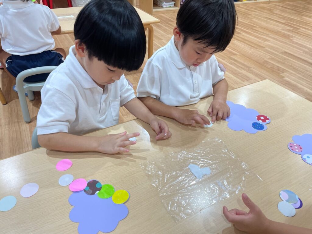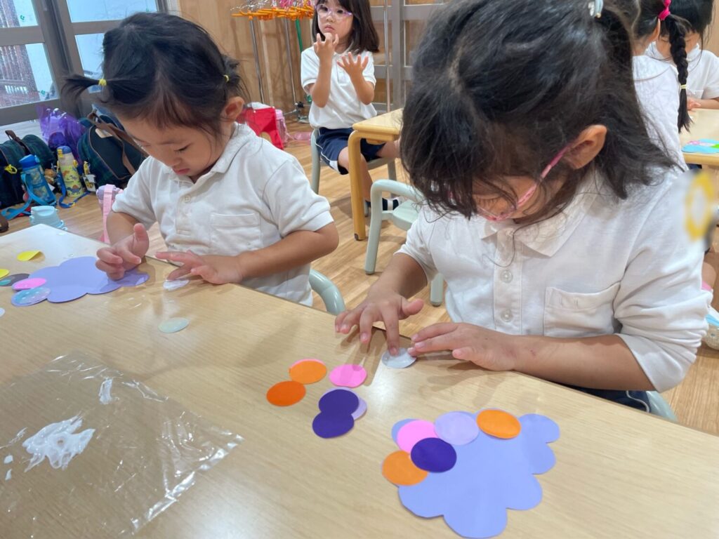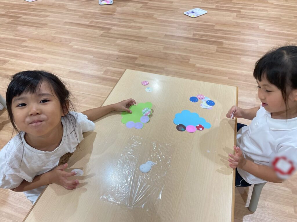 丸を画用紙にペタペタ🟠🔴🟡🔵🟢