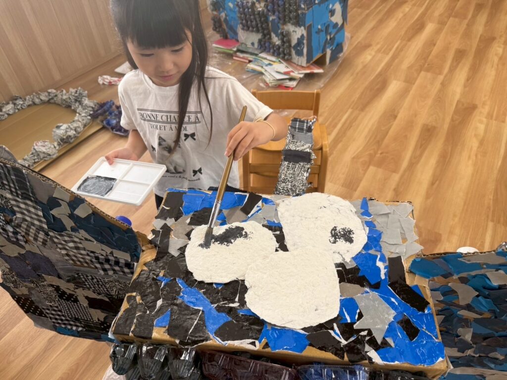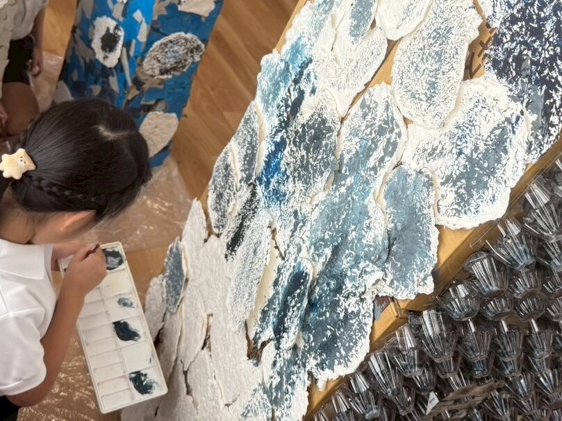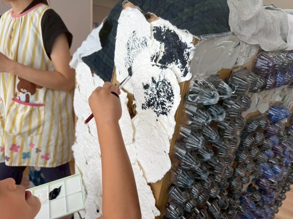 手作り紙が完成したら、絵の具を塗っていきましょう