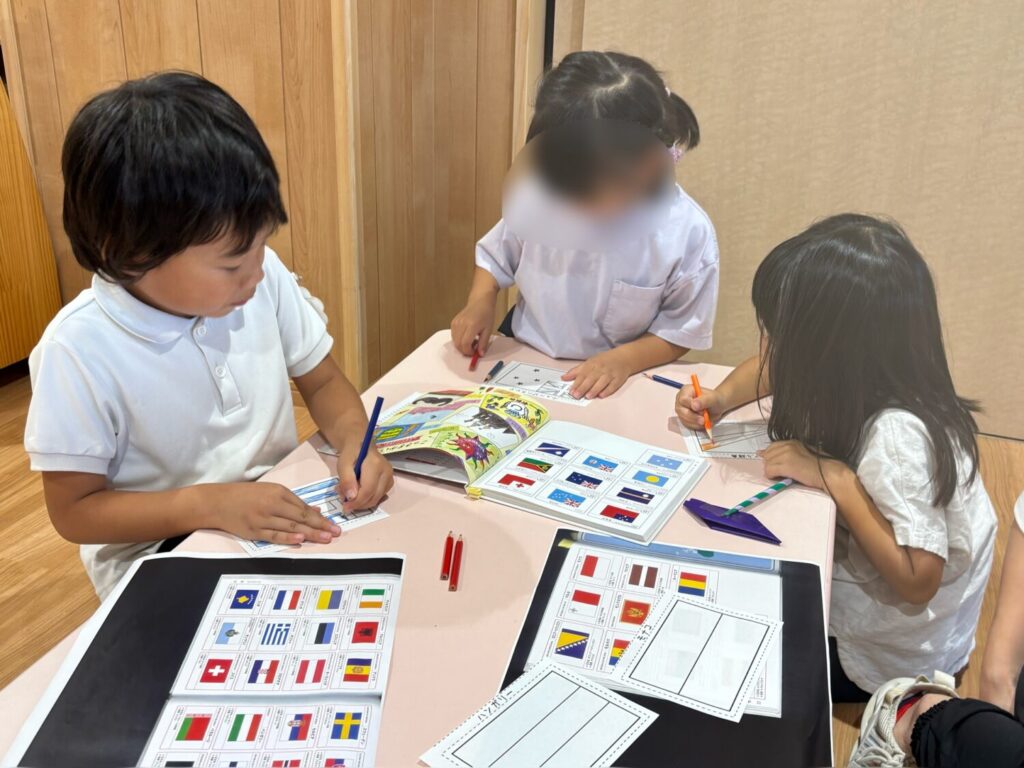 みんなで協力しながら、色鉛筆を色ごとに数え、園長先生に報告するほし組さん✨