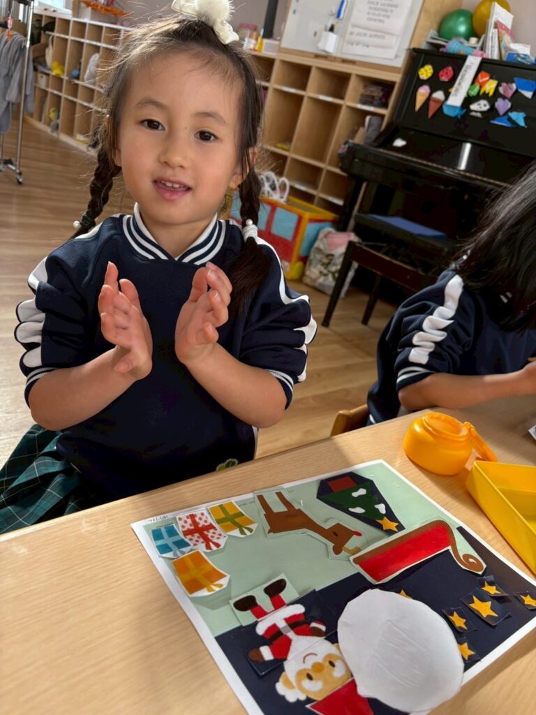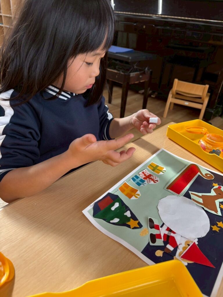 絵を見ながらサンタさんからのプレゼント🎁のお話も盛り上がっていましたよ😊