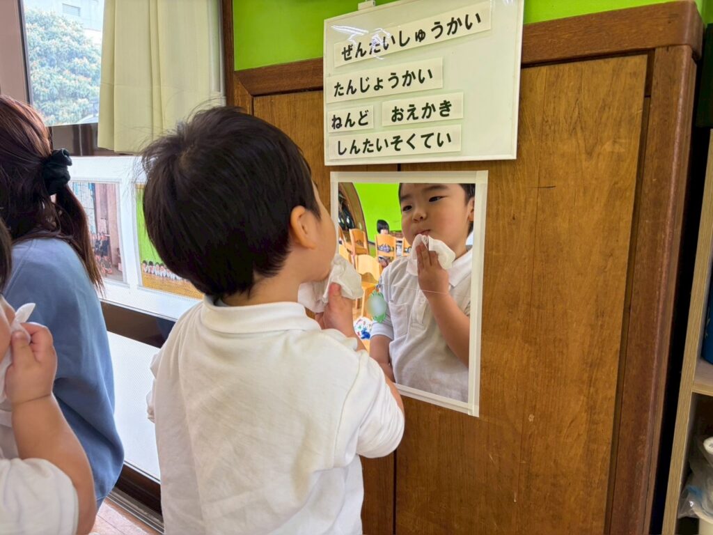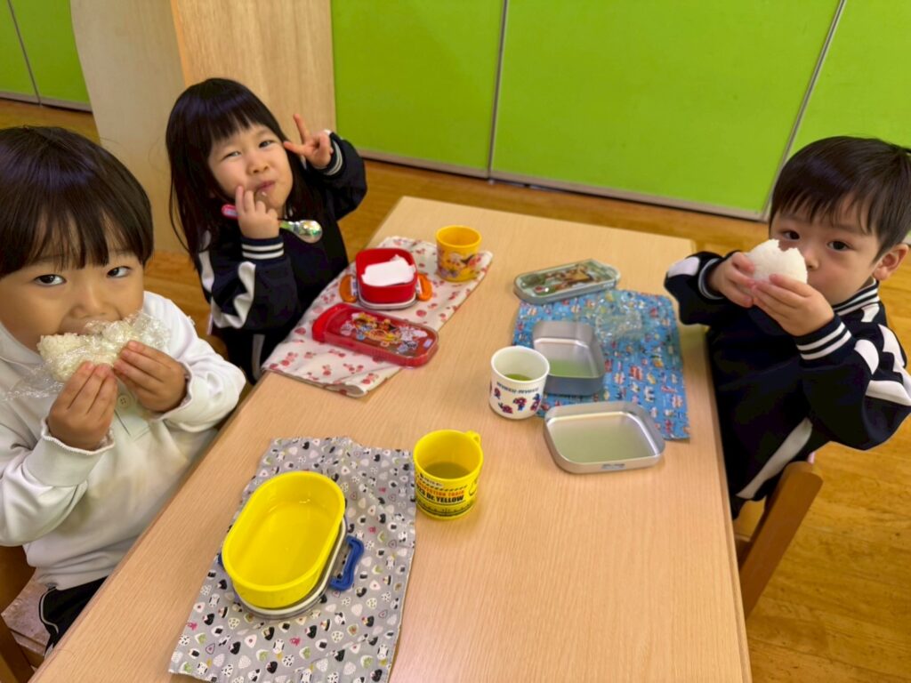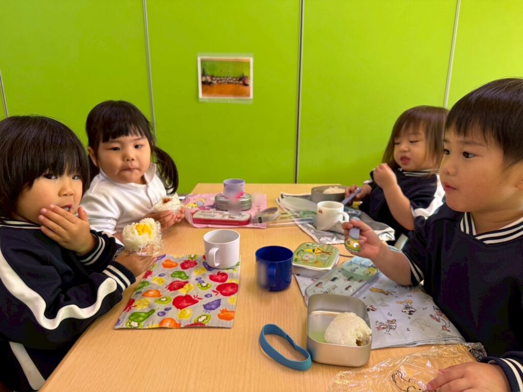先日、今年初めてのおにぎりday🍙がありました。中身は何が入っているかな〜と、おうちの方の愛情たっぷりおにぎり🍙を頬ばる子どもたち☺️✨