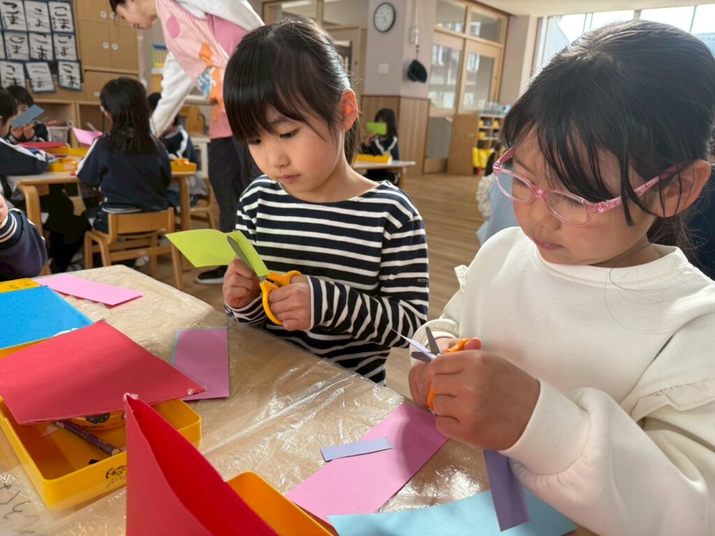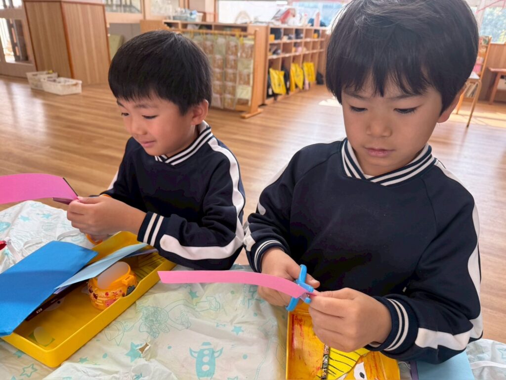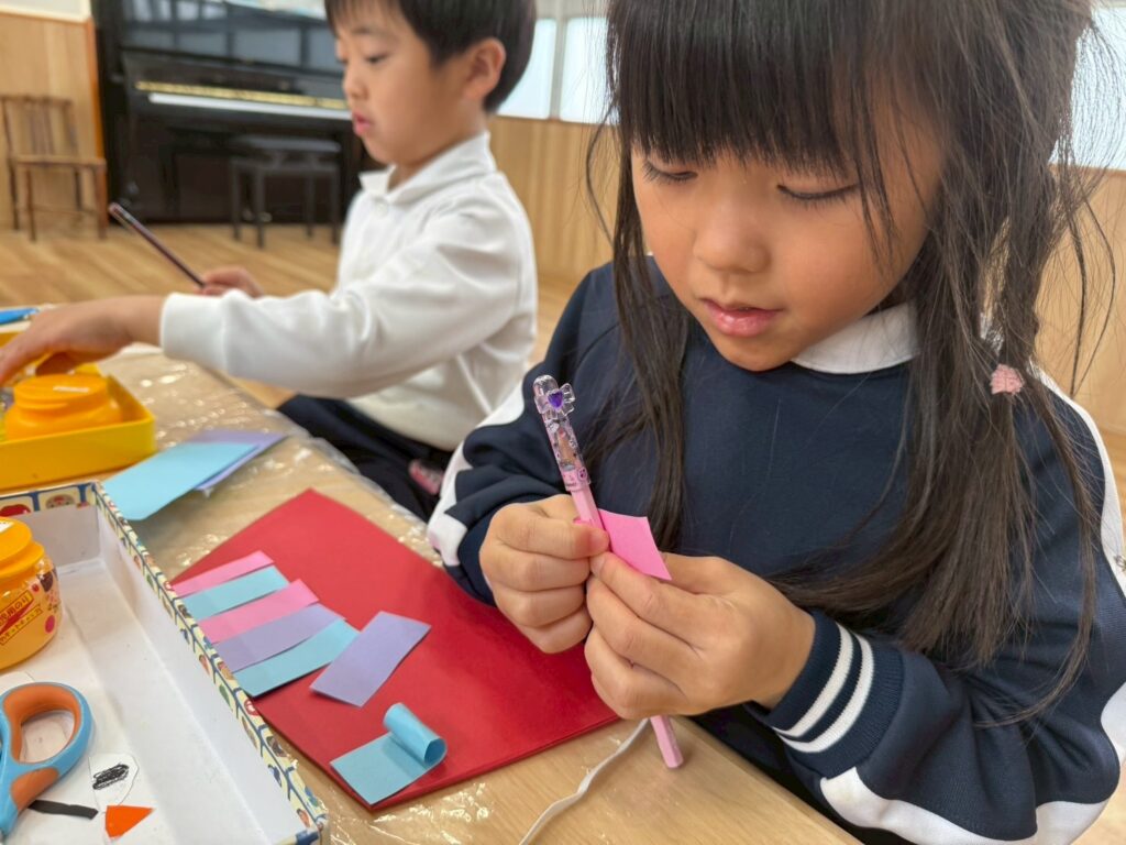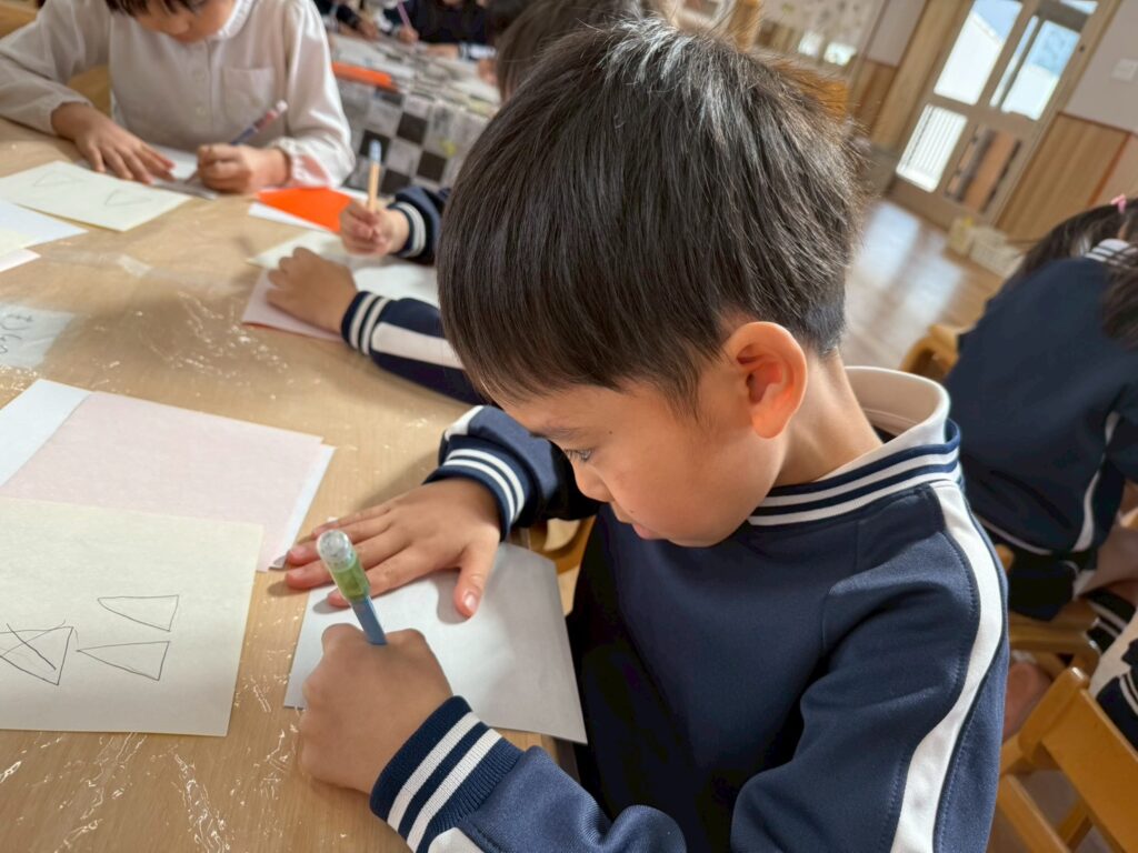 ひかり組(年長)さんのお面作りを覗いてみました✨
