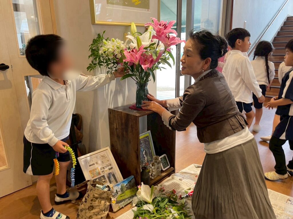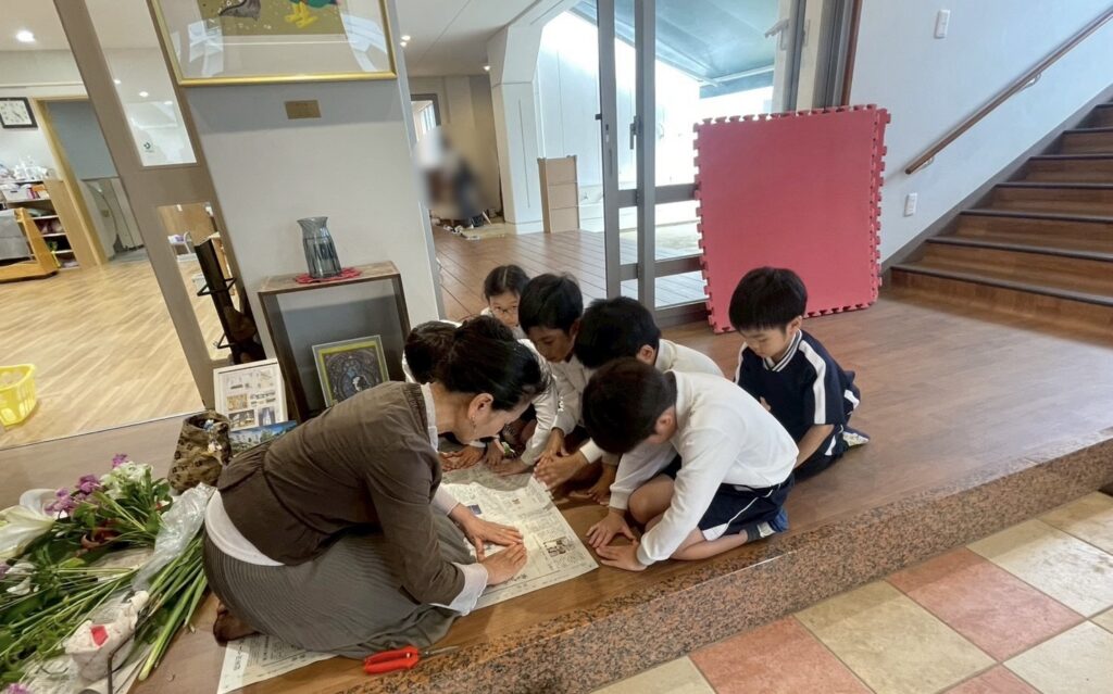幼稚園の玄関を彩る華やかな空間に✨💐