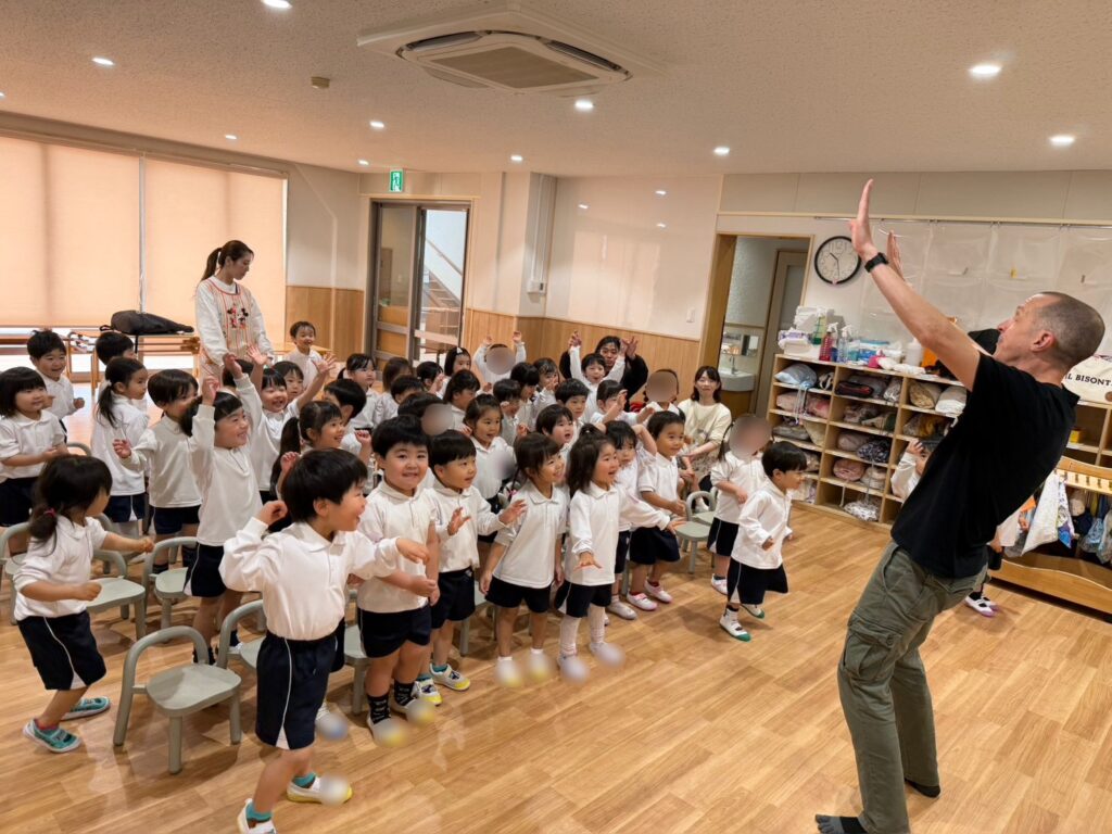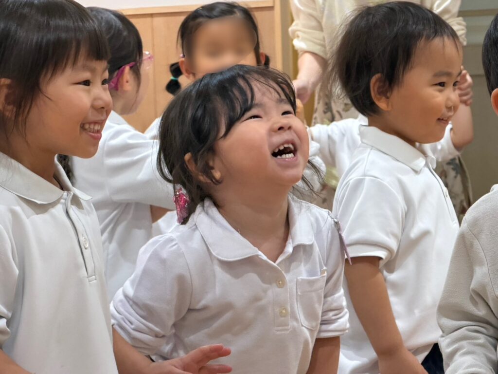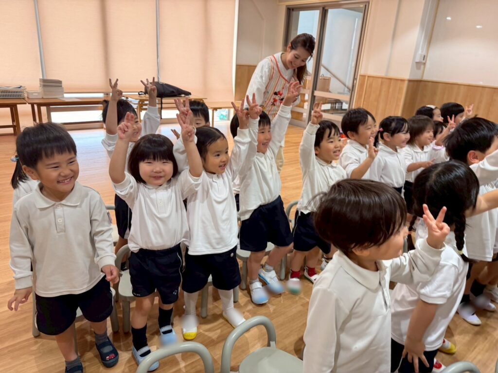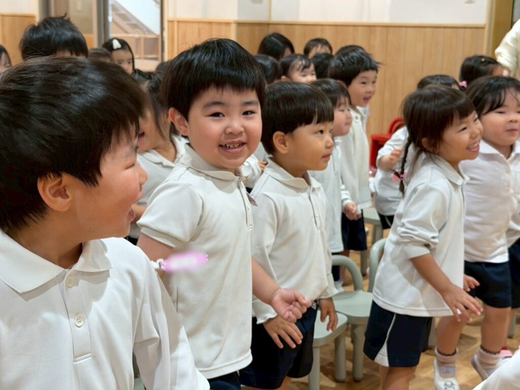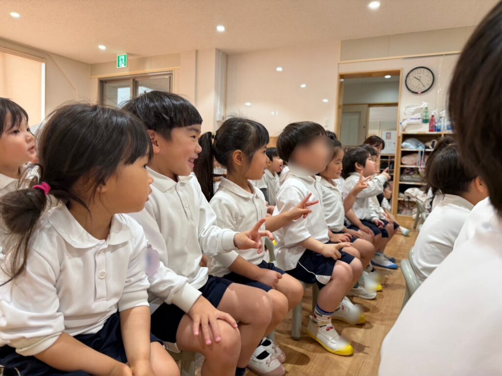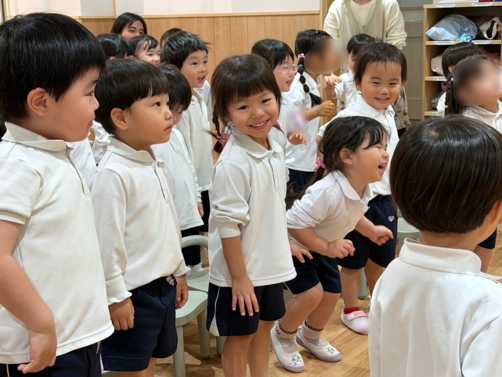 王栄幼稚園では、お誕生日会の日に英語の時間があります😌
